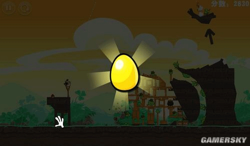 3、第3颗金蛋获取位置:帮助菜单游戏中暂停按问号,转到帮助页面,当你看到会下蛋的白色小鸟时,点下鸟蛋,就可以找到一个金蛋。(前面几关没有,到后面才有)