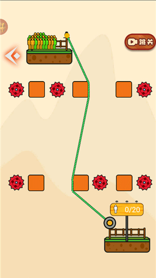 2、只需将手指拉到在线关卡的结束和开始的绳子上,即可帮助角色通过关卡。