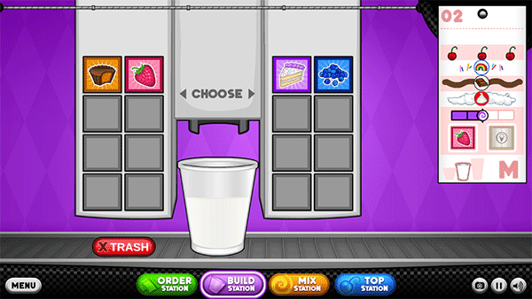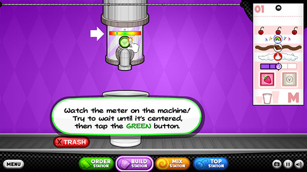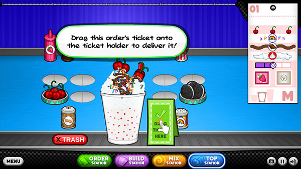 5、你会把每位顾客的订单记在订购单。你需要一杯冰淇淋和冷冻Sundae的原料。前往制作台开始制作…