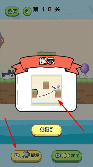 3、遇到关卡有难度,可点击左下角查看通关提示。