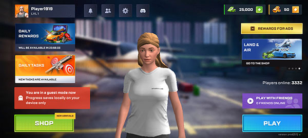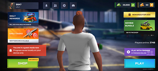 5、然后正式进入游戏界面,左上角是昵称信息,右上角是当前的资金,点击左下角SHOP进入商店。