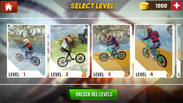 2、选择一辆合适的单车,点击“unlock all bikes”开始游戏。
