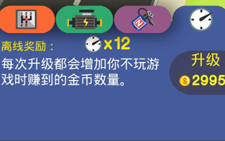 每次升级都会增加你不玩游戏是赚到的金币数量。