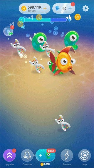 合并动物以获得新的品种,你甚至可以像着名的鱼类一样获得灵魂!探索水星并搬到土地!采取相同的野兽或原生动物,玩他们的遗传学,并享受结果!购买水晶,让你的进化更快或磁铁融合屏幕上同类的所有生物!