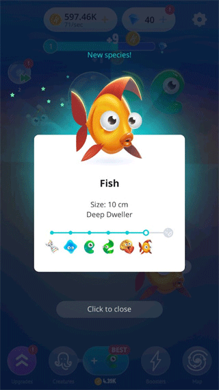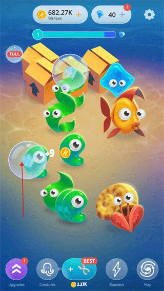 2、除了下方可以增加以外,游戏中也会时不时的出现气泡,点击也会有新的物种;