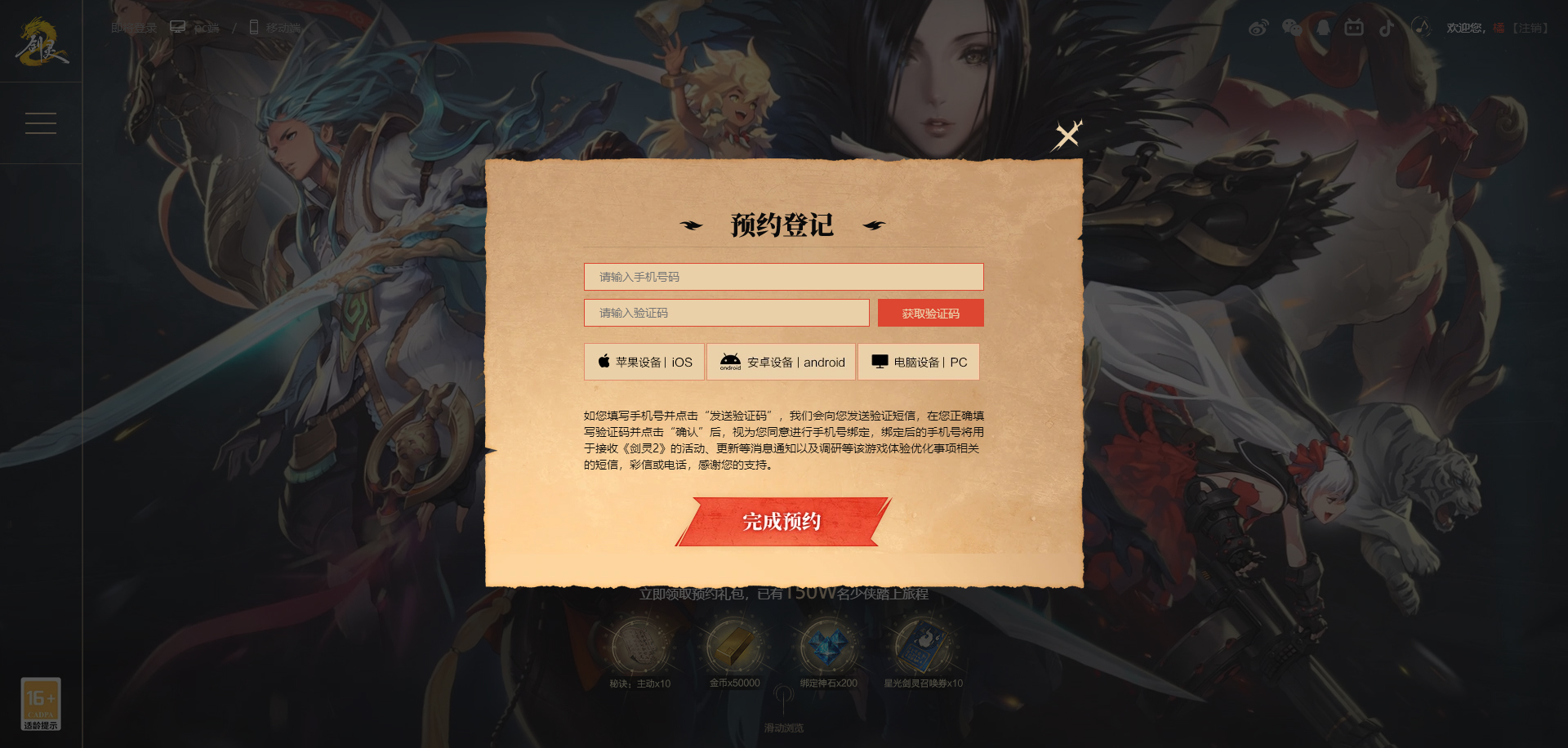 1、打开剑灵2手游国服官网:https://b2.qq.com/,点击下方立即预约登录账号,支持QQ和微信登录;