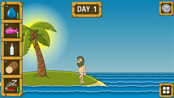约翰尼岛孤岛求生手机版是一款轻松休闲的模拟生存游戏,玩家扮演约翰,在一座孤岛上努力生存。为了活得更久,你需要合理管理资源,比如捕鱼、集水和收集木筏材料,同时还要想办法逃离这座岛。游戏有两种模式:剧情模式是尽量活下去并成功逃出去,而生存模式则是尽可能长时间待在岛上,考验你的资源管理和生存能力。