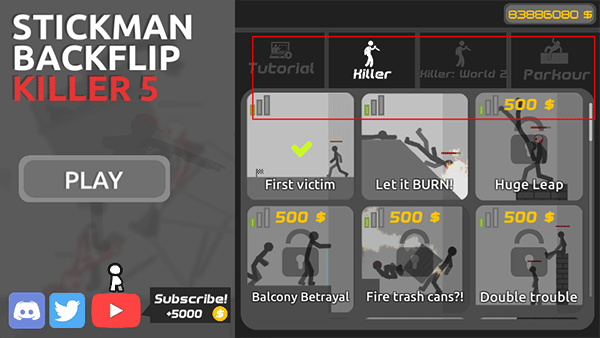2、升级你的装备和跑酷技能,购买武器,成为世界上最好的火柴人,通过酷跑酷级别并尝试杀手模式来摧毁你的敌人。