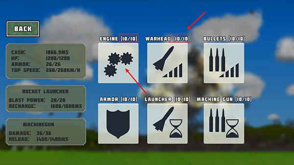 1、游戏中有的关卡可能会有敌方的导弹车进行反击,增加游戏的难度。