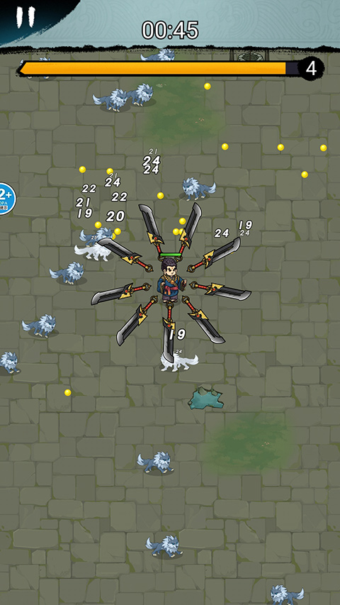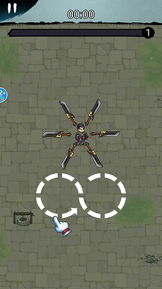 2、我们可以通过滑动屏幕控制角色移动,角色身上的飞刀会自动转动攻击敌人,