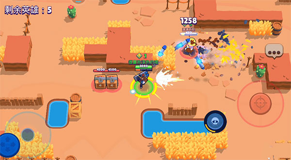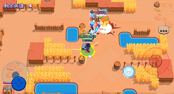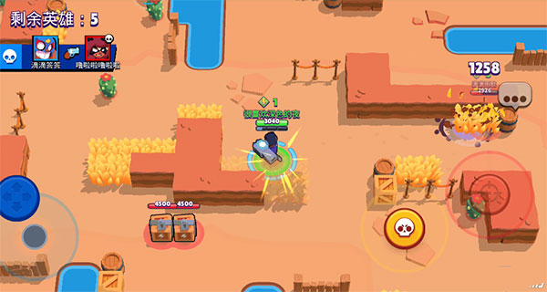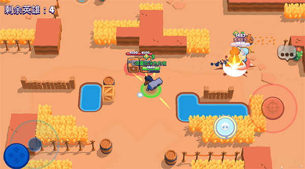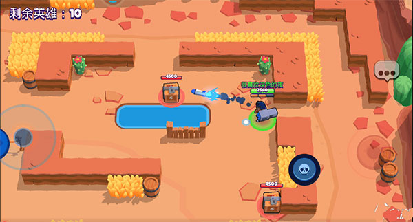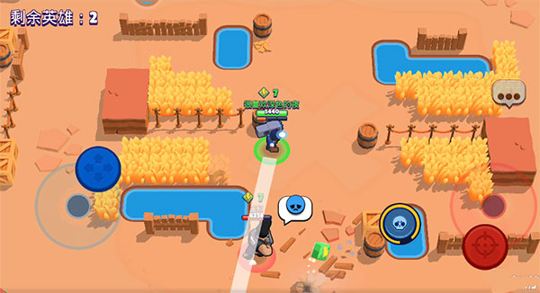 刚开始游戏对局的时候,布洛克不用担心有其他玩家过来和你抢箱子,因为布洛克的攻击距离很远,在玩家过来之前,布洛克直接可以滑动攻击键,瞄准其他玩家经过的路径,命中敌人就可以攒到能量。