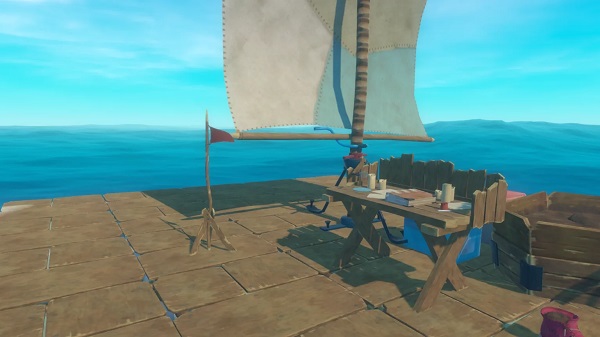 基本生存的问题都解决了之后,接着就要开始盖其他比较重要的设施,包括研究桌、风向旗、船帆。研究桌可以解锁其他的设施,盖好后直接把手上所有可以研究的东西拿去研究并解锁新设施!风向旗、船帆可以简单控制船筏的航行方向,看到远方有岛屿如果风向顺的话可以顺利抵达该岛!