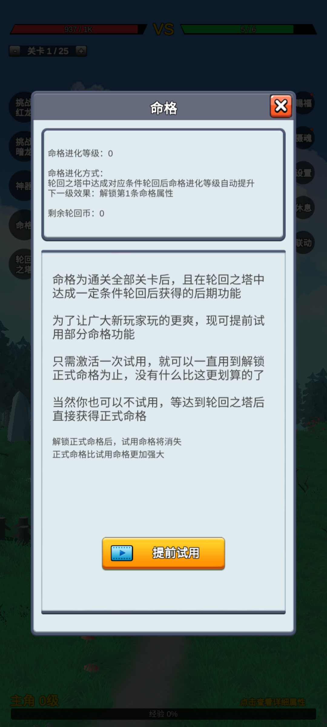 - 在通关全部关卡并在轮回之塔达成一定条件后,将获得命格这一后期重要功能