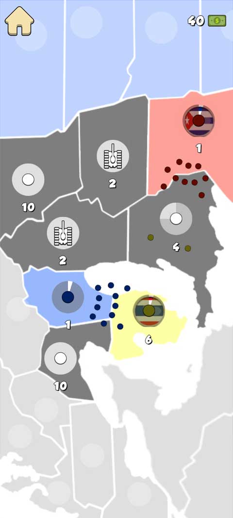 5、并且玩家玩到后面会有更多的国家开始侵占我们的地方,这时候就需要有策略地去打败他们了。
