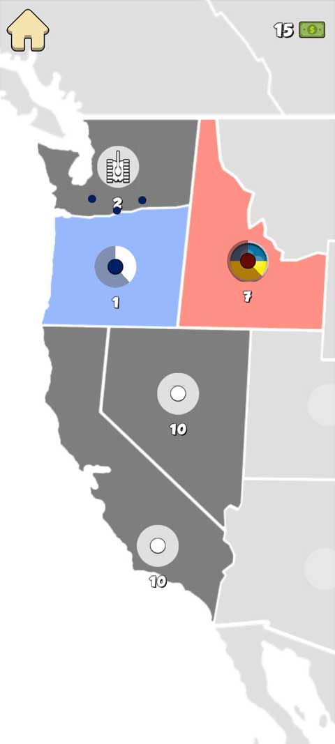 1、开始游戏时,玩家将作为蓝队那一方占领灰色区域,当你下方的数量达到一定值时就可以攻占数量最大的那个区域。