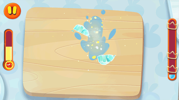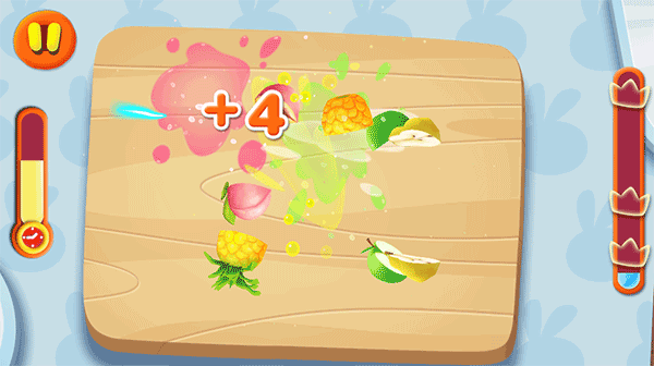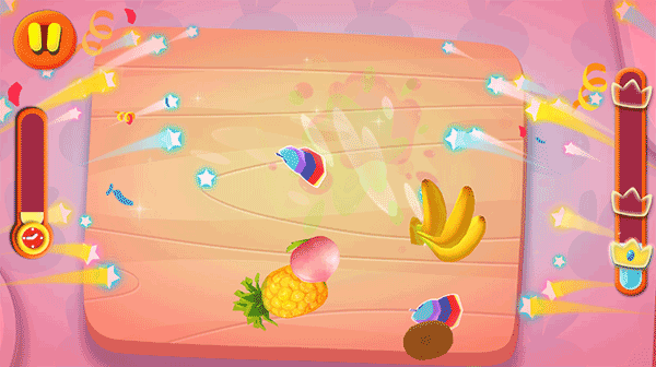 3、切到彩色葫芦会让水果从左右边爆发出来,效果如图。