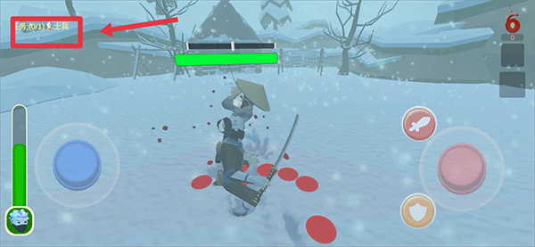 1、进入游戏后,蓝色轮盘控制忍者的移动,红色轮盘切换视角,红色剑按钮为攻击,黄色盾牌按钮为防御