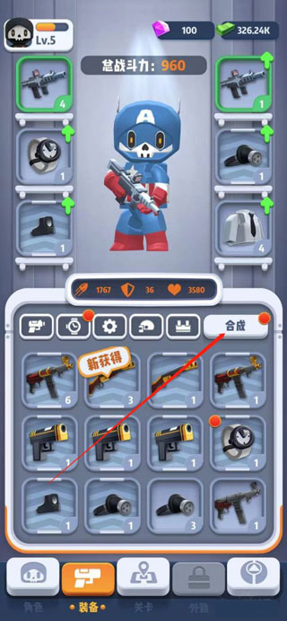 3、选择想要合成的武器,并且点击3件一样的武器。
