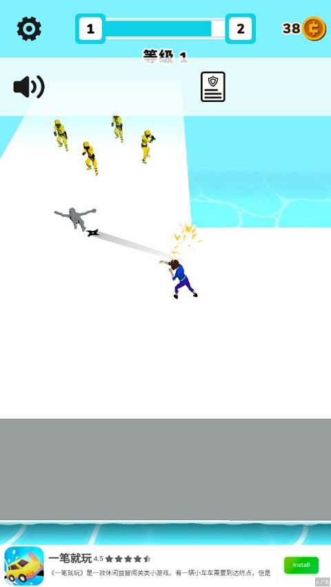 武器大师小游戏官方版是由号称“毒厂”Voodoo开放的一款休闲动作类手游,在游戏中玩家将扮演一名功夫大师,通过闯关模式消灭关卡内全部敌人。简易的上手难度,老少皆宜,期间你只需通过手指滑屏,在合适的时机松开手指便可释放大招。