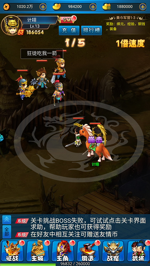 进击的赵云是一款以三国题材结合中国神话故事而创作的挂机回合类游戏,其场景画面都采用了最先进的引擎技术制作,整体看起来使人赏心悦目。同时,在该游戏的背景里,玩家将扮演一位主公来到这神话三国时代,在这个充满战火的时代通过不断的召集武将、培养上古神兽等方式,然后轻松的制霸神话三国世界。
