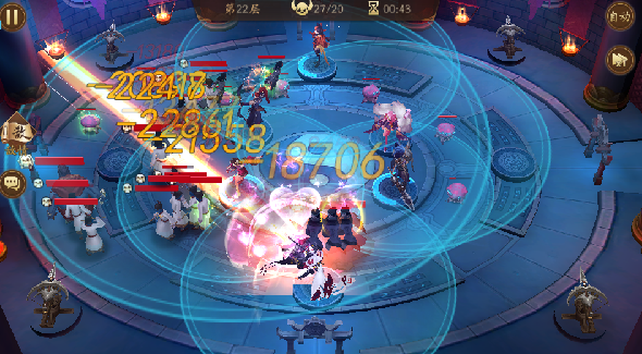 操作技巧:多多使用击飞、眩晕等技能让怪物囤积起来,然后使用输出高的幻灵集火秒掉。