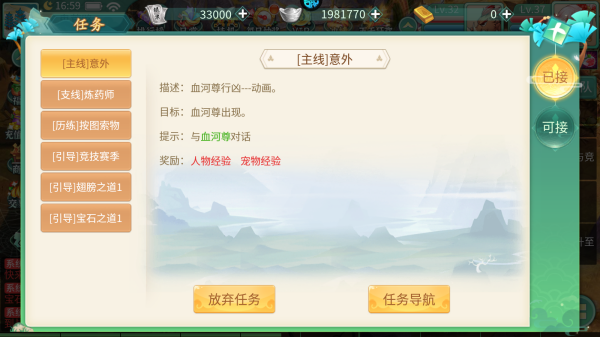 2、完成主线和支线任务前期主线支线任务的升级速度很快,在有体力的情况下选择优先完成。可以用钻石去购买体力加快任务完成进度。