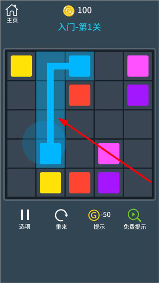 3、打开连线玩法,把相同颜色的方块连在一起;
