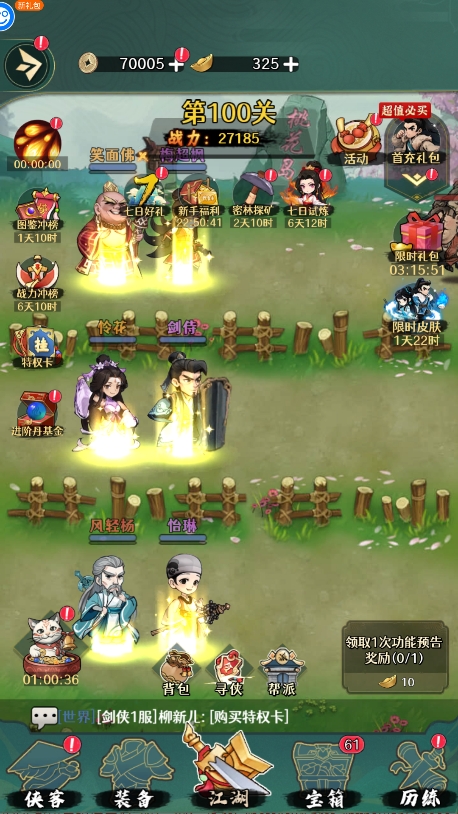 福利四:海量宝箱免费赠送,更有概率获取绝世侠客,侠客云集,披荆斩棘!