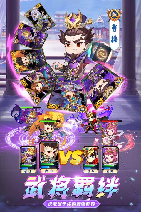 - 独特玩法:全新三国题材卡牌策略手游,群雄逐鹿的争霸玩法和丰富的策略搭配让每场战斗都充满惊喜