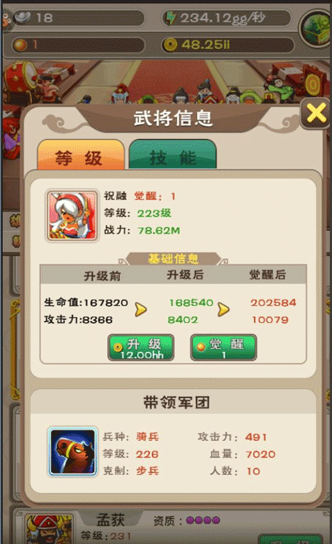 3、获取的金币可以用来提升你的部队实力和磕头的能力;