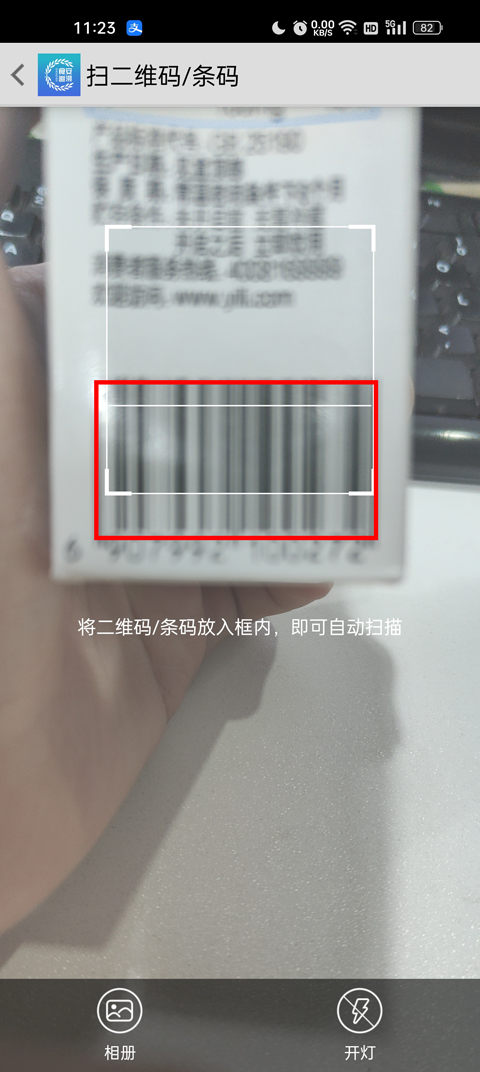 2、你可以点击中间的扫一扫,将你的商品条形码或者二维码放入扫描框内,即可自动扫描;
