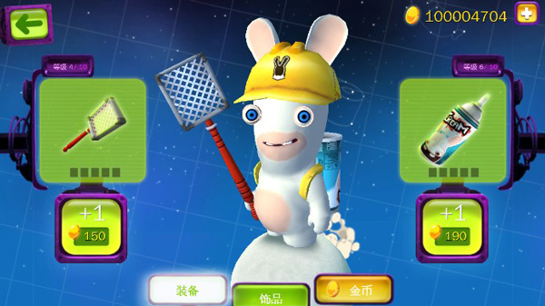 - 用新的头盔、球棒和其他新奇的装饰来装扮你的疯狂兔子;