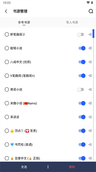 1、用户进入应用的书源管理页面中点击【导入书源】