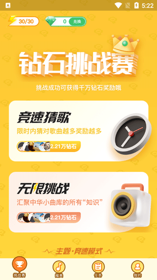 4、挑战赛里分为竞速猜歌和无限挑战,以后可以选择自己喜欢的模式进行挑战