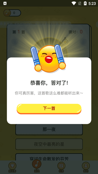 7、猜歌成功,点击下一首