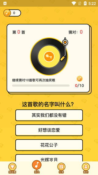 6、在下方的闯关模式里,猜对十首歌可以进行抽奖