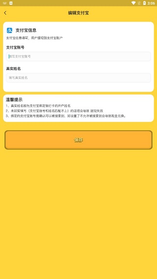 编辑支付宝的详细信息,包括账号和用户您的真实姓名。