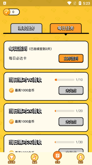 8、在下方的人物里可以查看每天完成的猜歌任务并领取奖励