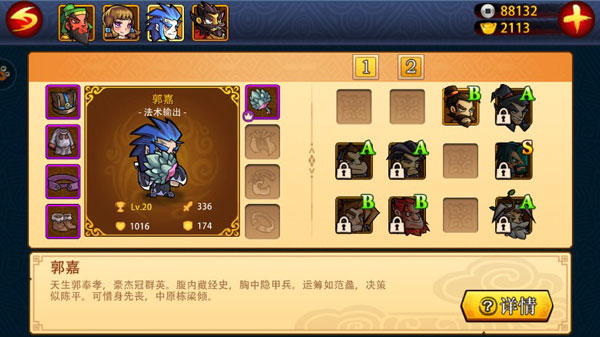 1-8:难度略微增加,除了猫头鹰之前所有的地方兵种都会有,建议用银币先招募一个B级武将,这里建议招募太史慈和黄月英,太史慈属于全能近战,本身很肉,伤害不俗,而且第一个技能的群控很好用,黄月英是远程物理输出,好处在于方便操作,不像近战容易踩到火焰地带,不过这里小编选择了典韦,不走寻常路,萌新千万不要模仿,土豪大神请无视我,毕竟小编狂战刺客控多年了,有了4个武将,分分钟可以我要打十个了。