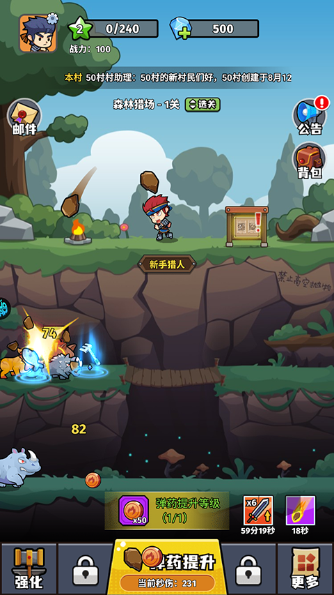 猎人前线官方版是一款非常轻松解压的休闲游戏。在该游戏里面没有什么复杂的操作和看着就让人头疼的技能组合,玩家只需要通过使用“弹药”来不停的轰炸怪物,然后通过击败怪物爆得的武器或者抽卡抽的武器来进行装备,在叠加上游戏内特色天赋、体魄、武技和宝物印记等方式来成长,从而轻松击败各种怪物。同时,游戏内除了基本的挂机放置玩法之外,还有着开荒副本、悬赏令和挑战心魔等特色玩法,玩家可以根据自己的需求来自由选择。最后游戏内的奇葩武器都有趣味的解说,感兴趣的可以看一看。喜欢轻松挂机类的游戏玩家,不妨下载该游戏体验一下。