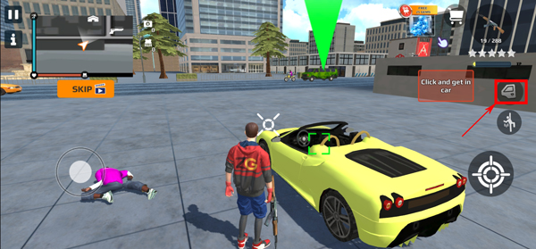 4、当我们想要进去载具时,只需要来到车辆旁边,右边就会出现一个车门的标志,点击它就可以进入驾驶位;