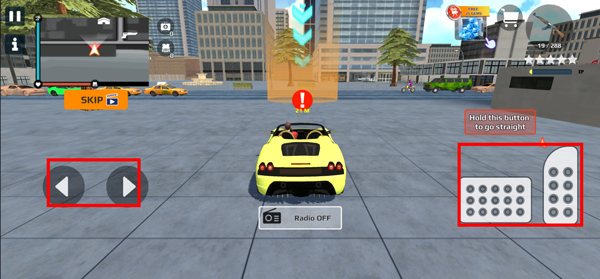 5、进入车内会有各种驾驶按键,右边分别是后退和前进的按键,左边的是左右控制车辆方向的按键;