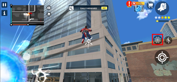 7、右边还有一个蛛网的按钮图标,对着高楼点击它可以直接吸附在高楼上;