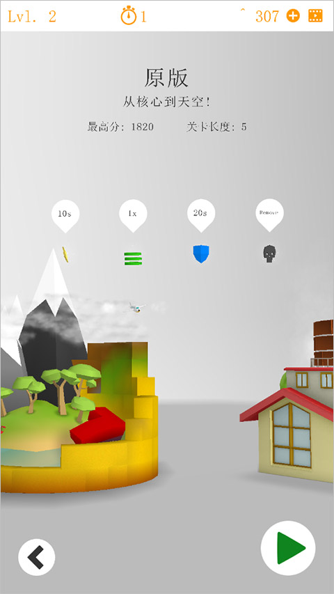 游戏开始后,四周开始不断有方块落下,你需要通过滑动来控制人物的前进方向和跳跃时机。因为场地是环形的,所以理论上不管逆时针还是顺时针都没有问题,但因为需要考虑到头顶上方块的掉落位置,选择更合适的方向前进显然非常关键,避免从天空中掉落的方块,面对不同的障碍有不同的操作手势,控制它们,开始你的动作,不要被砸中或者是不要太慢,否则你很容易的死亡,环形跑酷还拥有多个主题,你爬的越高,发现的主题也就越多,这是一个非常有趣的游戏,喜欢挑战的千万不要错过!