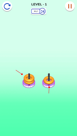 3、当所有相同颜色的彩圈都堆叠在一起时,就通关了。