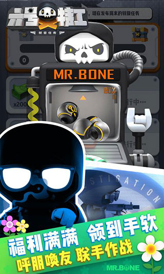 1、简单操作,消灭敌人,收集强力武器和装备。2、解锁全新装备和角色,基因强化,战力无限成长。