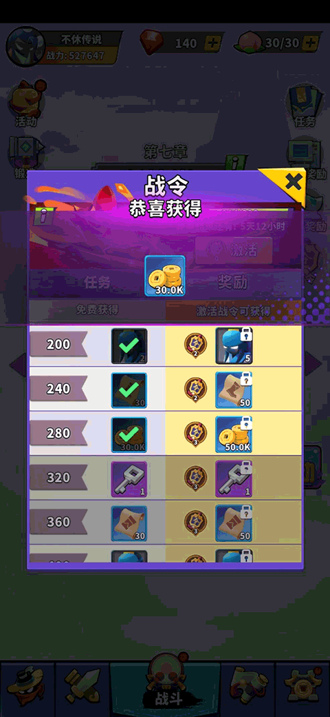 战令也可带来适当的金币收益,完成战令指定点数可获得金币。例如,获得280战令点可获得30K金币,但相对获得金币的相对次数少,可作为少侠获得金币的辅助方式,毕竟,蚊子腿再小也是肉。