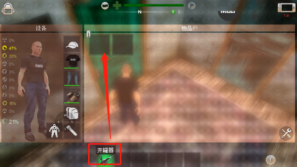 5、在房间中寻找到开瓶器后,将其装备到身上;