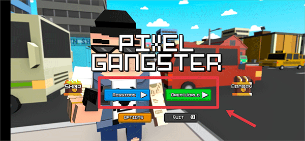 1、打开游戏后,在游戏首页中选择一个模式游玩,missions为关卡模式,open world为开放世界