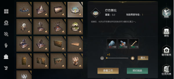 建造复活祭坛首先需要解锁前置学识:家具设备